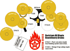 Growing up in the industrial outskirts of Sofia, Bulgaria, Borislav Trifonov Iochev was exposed at a young age to blue-collar entertainment. As he foraged through local taverns to bring home his drunken uncle, his head was filled with hard-core, gypsy music full of adult language and fast add time signature beats, all of this making him grow up fast and learn early the difference between girls and boys. From this time, he was hooked and everything went downhill. It wasn't any more a question of a day job or music; it was question of Rock-n-Roll or Gypsy Rumba or both. Alas, he didn't get tremendous support from his parents. Both of them had played music previously and were way too familiar with the lifestyle of the musician type. His father Trifon Ivanov Iochev played trumpet for a short period of time but soon found himself more interested in boxing (think Rocky Balboa of Bulgaria). His mother Veska Borisova Balkandjieva still talks about how she played the violin before the family pig found it and ate it. ![]() Anyhow, in 1984 Boris finally came to his senses and started his serious education with Boris Dinev, professor in the Bulgarian State Conservatory (now teaching in Belgium), and member of world renowned percussion ensemble "Polyrhytmia". For the next two and half years Borislav Trifonov Iochev reduced the heavy drinking to virtually nothing and didn't date any girls or boys, completely devoting himself to 8 0 hours a day or night studying jazz drumming, vibraphone and marimba.