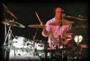 Gene Krupa and some Latin stuff, and, uh, not Drums Of Passion, but that kind of stuff; you know, Afro-Cuban stuff. And I also was listening to pop radio and started getting into the Beatles. So here I am listening to Krupa and Ringo at the same time, along with some other stuff in the 60's. I'm also hearing Hal Blaine play on Paul Revere and The Raiders and with the Mama's & The Papa's... the Beach Boys was also Hal. And it turned out that whole time I was emulating Hal! I eventually met and sort of became chummy with him later on. Hal's a great guy, a real sweetheart. He has a thousand stories... he's been there and done it all. Just get him started you know, the Byrds this, Brian Wilson that, and all the producers, like Phil Spector... Hal's is one of my heroes in the music business, along with Keltner, Ringo, & Bozzio. I'd be happy to do 1/10th of what Hal has done. I would also have been very happy to be in the Beatles for only six years you know, and I've been doing this for 19 1/2 years!