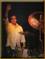 Bermuda: I have a whole FAQ on endorsements that I wrote for newsgroup rec.music.makers.percussion as far as how that works. I've been playing Impact drums for 15 years, been using DW pedals since 83, Sabian cymbals since 93. Heads... technically I'm a REMO endorser but I'm trying a bunch of stuff. . Snares, I'm trying a bunch of stuff. I have a BEAR head on there, Aquarians… I like Remo and Aquarians on toms I have been using Mainline sticks for 5 years a lot longer then he has been advertising. I was one of the early guys to get in there. Love those. My thing, especially on the road, is I don't like to replace things if possible. I don't like sticks breaking and the same with heads. I really don't like to change heads every 2 or 3 shows if I can possibly avoid it. So I use the Aquarian, the high energy one with the series of patches. They'll last me about 50 shows and they don't break but they tonally get choked up. And don't have any bottom to them and the soundman will say, I think its time to change your head. And the Bear head will last about 15 to 18 shows, which is pretty good. The Remos I have to change them every 2 or 3 shows and I hate to have to do that. I'm not one of those drummers that mooch gear. I've got a lot of inside knowledge of Impacts marketing, and DW, Sabian cymbals I'm friends with those guys. It's nice to know these guys on a different level. So, in terms of the endorsement thing, I've got sort of a different perspective than a lot of players have. But I worked all of those up myself and I only endorsed things I was using. If I didn't like the product, I wouldn't use it. You can give me all the free stuff in the world but if I'm not having a good time with it, I'm not going to play it, not even for free. And I've been through that with sticks and other drums before. I think I'm a Kurzweil endorser as well. Ruben, Al, and I use Kurzweil equipment. The endorsement thing varies also. Some of my deals are free gear, and some are nicely discounted gear. An important side of this is the support they give you. If you need something you can usually call the company and they will get it to you. You don't have to go looking for it in drum shops. The support is very important because a lot of times I will be somewhere where there isn't a Trading Musicians or a Jerry Garcia Drum Shop, which I was at the other day, or a Guitar Center or a Sam Ash or a Mars. Although I still shop locally for heads when I'm on the road, it's nice to have a relationship with companies... and it is